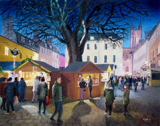 A set of four hand produced and signed greetings cards featuring scenes of the Bath Christmas market from my paintings. The scenes are - all are after dark, when the light of the market becomes quite magical. The cards are blank inside.